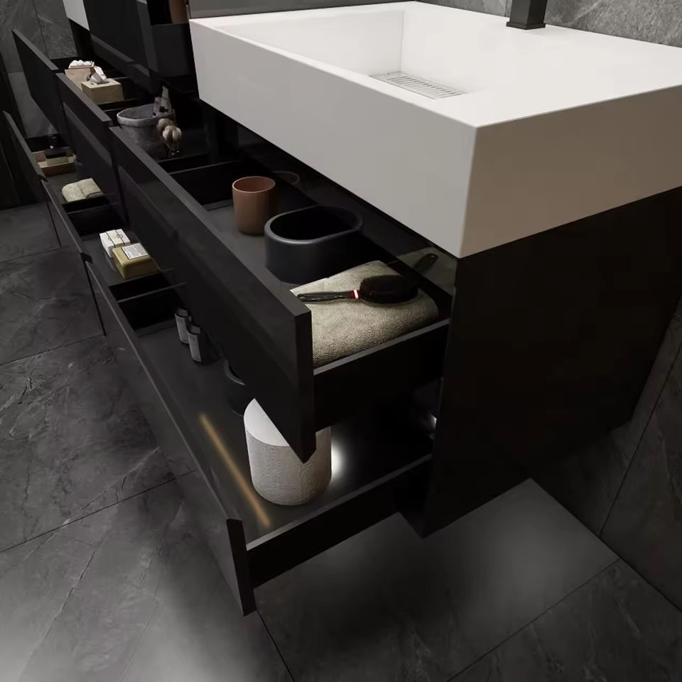 ตู้ห้องน้ำหรูหรามี2ลิ้นชัก PVC carcase กระจกอ่างอาบน้ำเซรามิกไม่รวมอ่างน้ำหินอ่อน