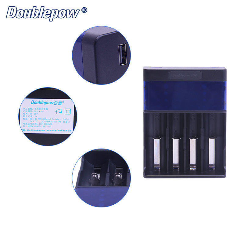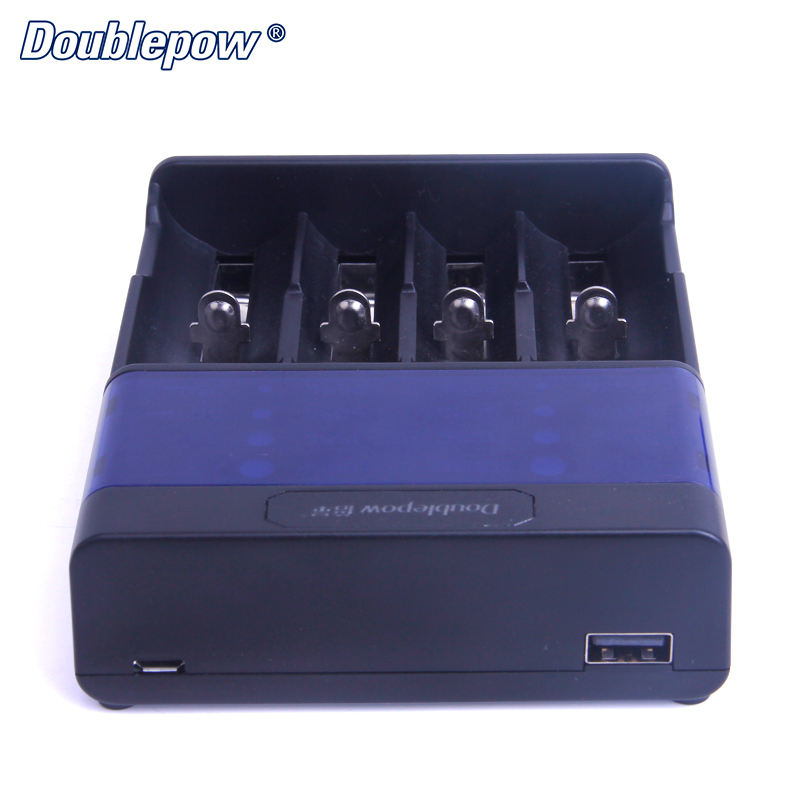 Doublepow ชาร์จแบตเตอรี่สมาร์ทยูเอสบีแบบพกพาได้4ช่องชาร์จแบตเตอรี่ AA AAA 1.2V Ni-mh NiCd 3.7V Li-ion พร้อมจอแสดงผล LED อิสระ