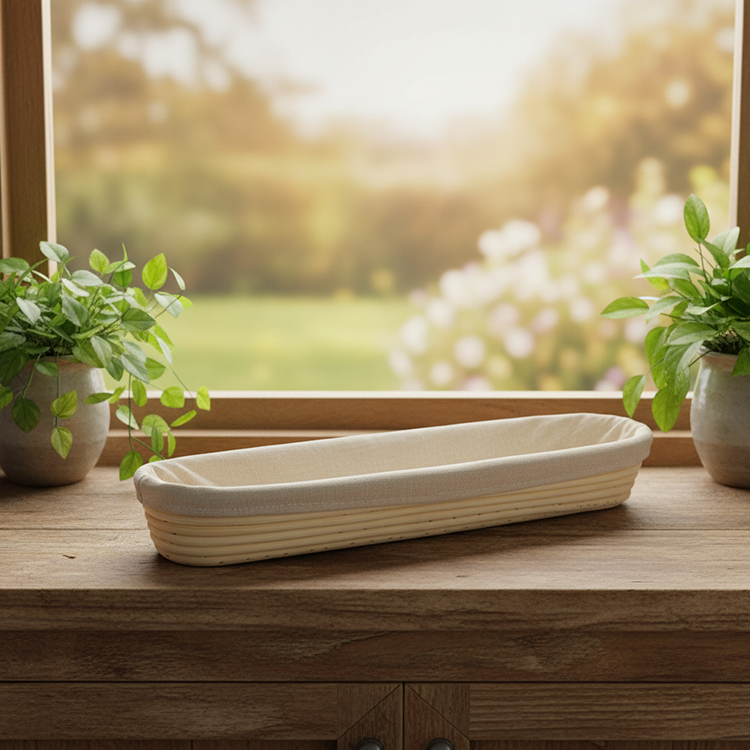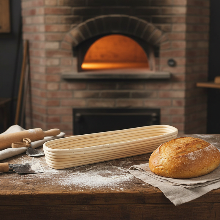 ชุดหมักแป้งขนมอบทำจากหวายสำหรับทำขนมปังบาแกตต์ฝรั่งเศสแบบ43X9X5.5CM สำหรับร้านทำขนมปัง
