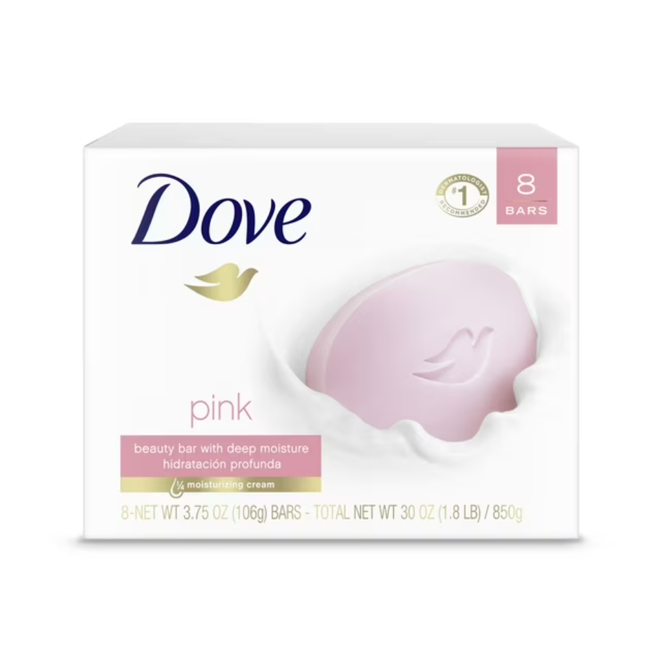 สบู่ก้อนโดฟ บิวตี้บาร์ สำหรับผู้หญิง สูตรอ่อนโยน กลิ่นกุหลาบชมพู ช่วยบำรุงผิวทุกประเภท ขนาด 3.75 ออนซ์ 8 ก้อน