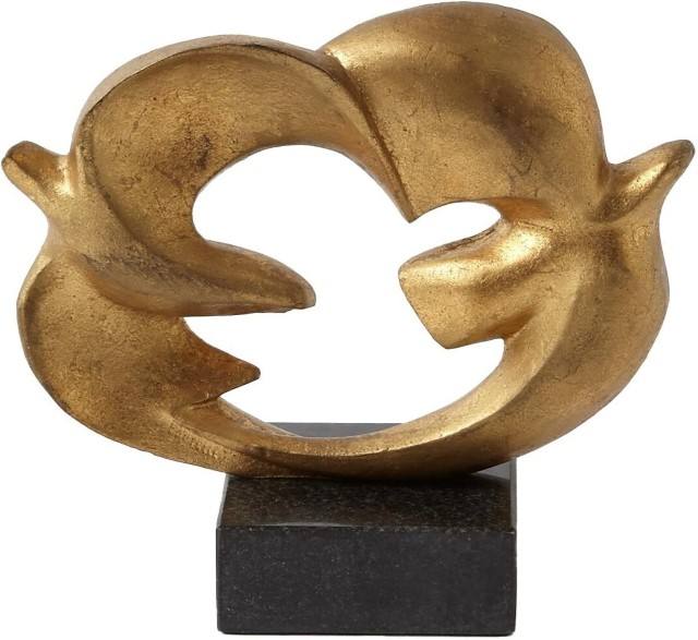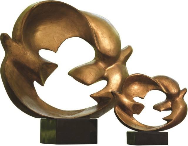 รูปปั้นนกพิราบสันติภาพติดตั้งอยู่บนฐานสีดำรูปปั้นสีทองและมีรูปปั้นขัดเงาทันสมัย
