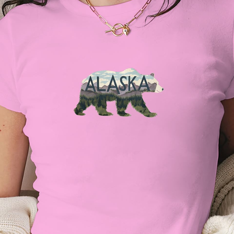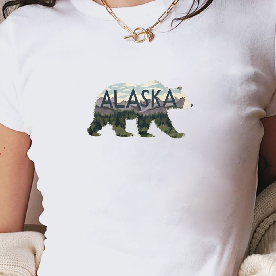 เสื้อยืดสั้นแฟชั่นผู้หญิง alaska Bear Silhouette