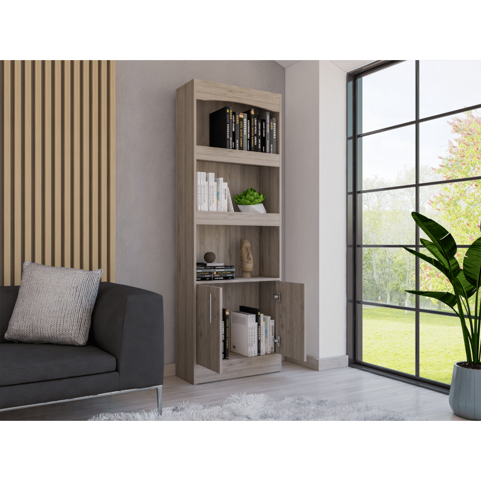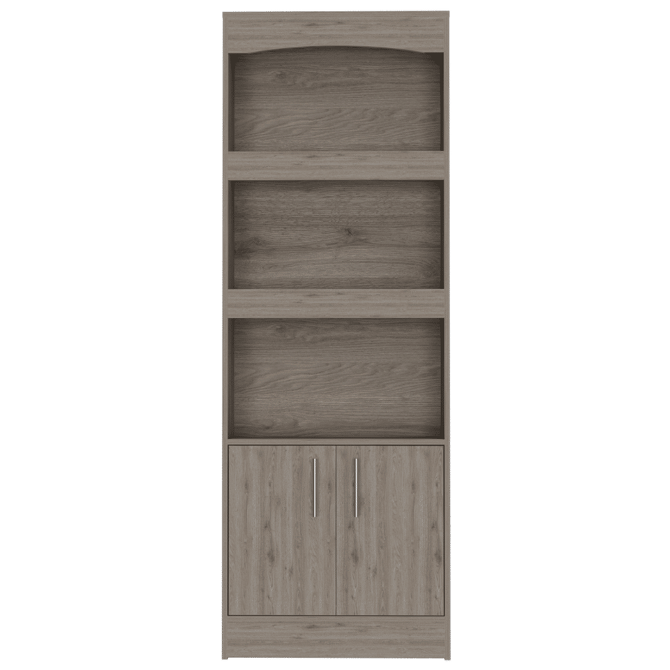 ตู้หนังสือโดซซาจากเดปอท อีช็อปตู้สองประตูสามชั้นสีเทาอ่อนพร้อมฮาร์ดแวร์โลหะ