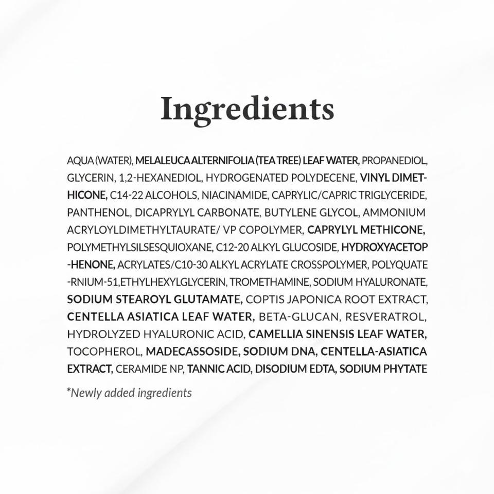 Tea tree leaf water, niacinamide, ceramide NPส่วนผสมหลัก