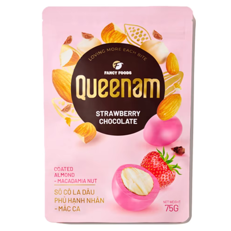 โรงงานผลิตช็อกโกแลตดรากี จำหน่ายโดยตรง รับผลิตแบบฮาลาล OEM/ODM ช็อกโกแลตเคลือบสตรอว์เบอร์รี อัลมอนด์ และแมคคาเดเมีย นัท 75 กรัม ขนมขบเคี้ยว