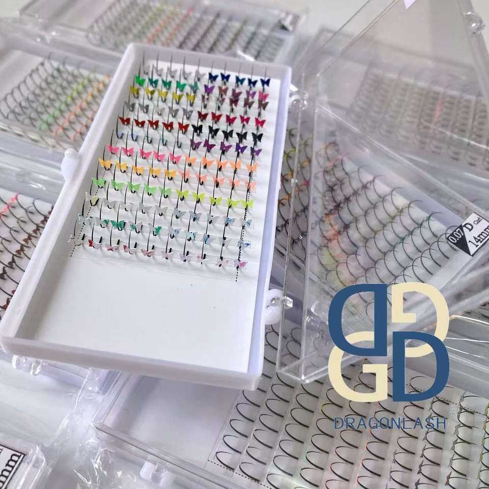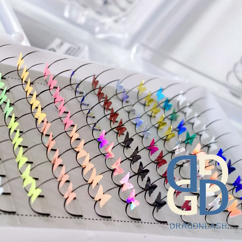 ขนตาปลอมแบบเส้นเดี่ยว Dragon 0.07 Flat Premade Spike Lashes นุ่ม สีดำด้านพิเศษ ยาวเป็นธรรมชาติ 3 มิติ รูปทรงผีเสื้อ หัวใจ กลิตเตอร์