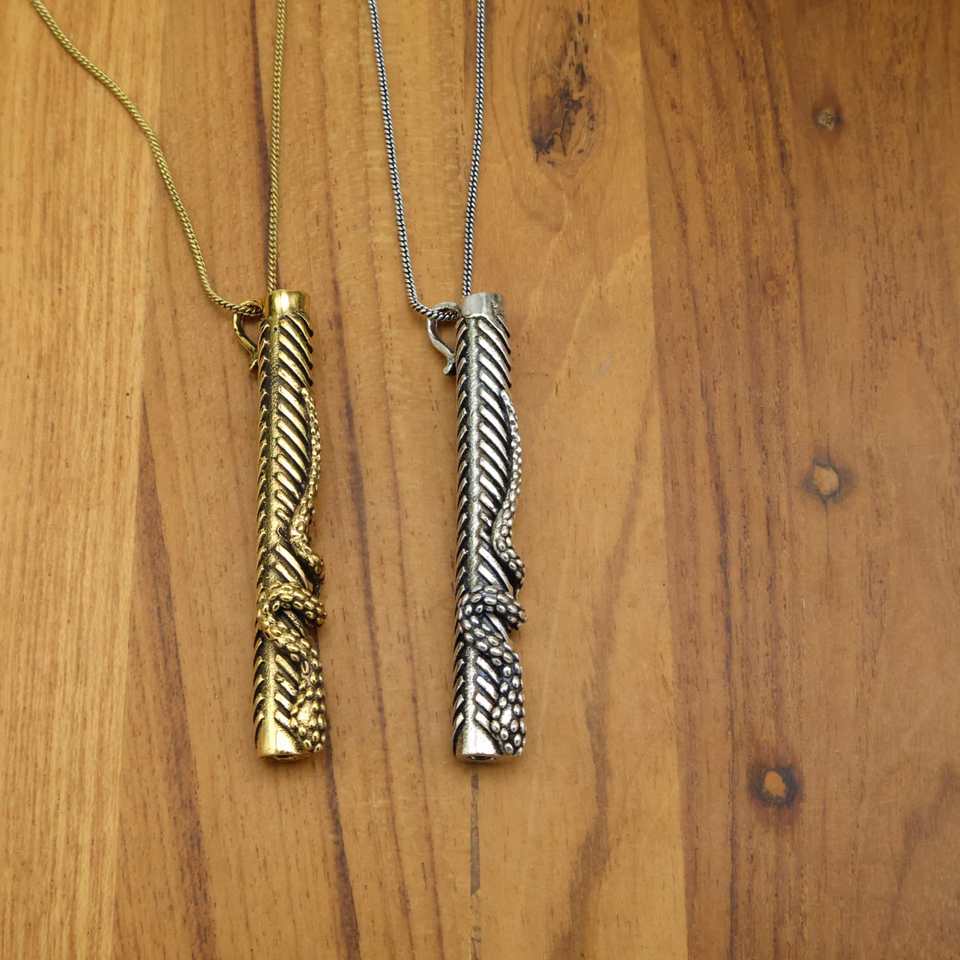 สร้อยคอจี้หลอดกรงเล็บมังกรนอร์สไวกิ้งเครื่องประดับสร้อยคอแนวแฟนตาซีเครื่องรางท่อสีทองและเงิน