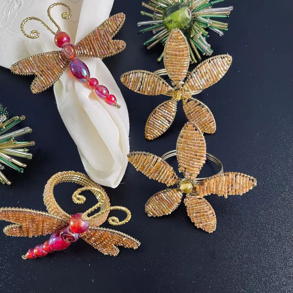 แหวนผ้าเช็ดปากลายมังกรบินและดอกไม้สีน้ำตาลอุปกรณ์ตกแต่งโต๊ะหรูหราสำหรับรับประทานอาหารงานแต่งงานและปาร์ตี้ที่บ้านจากอินเดีย