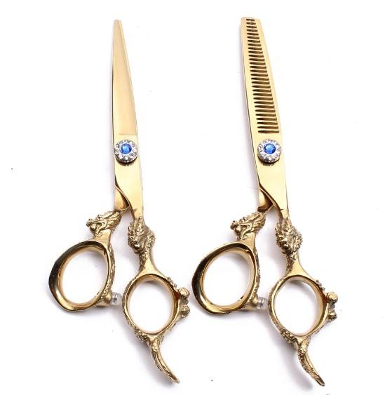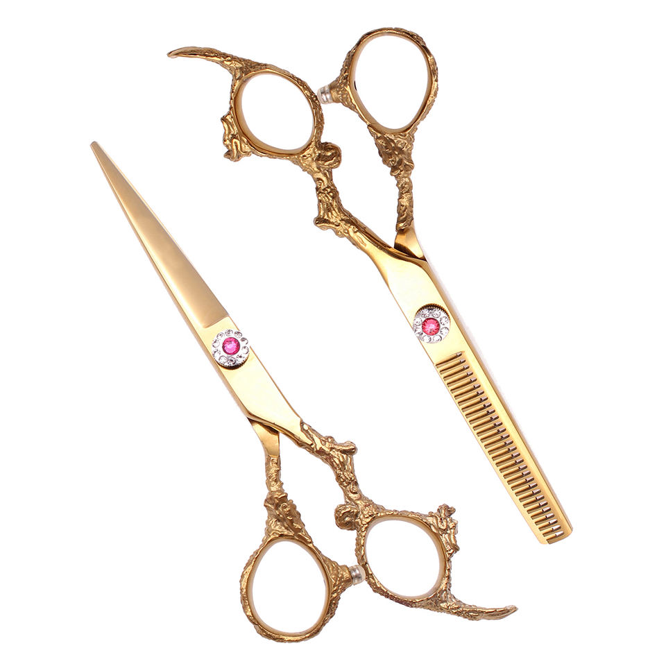 มีดโกนมังกรทองสำหรับมืออาชีพกรรไกรตัดผมและผอมบาง