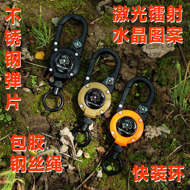 สายรัดคาราบิเนอร์ลายมังกรพร้อมเข็มทิศสำหรับตกปลาน้ำจืดกลางแจ้ง ใช้งานง่าย ดึงกลับได้