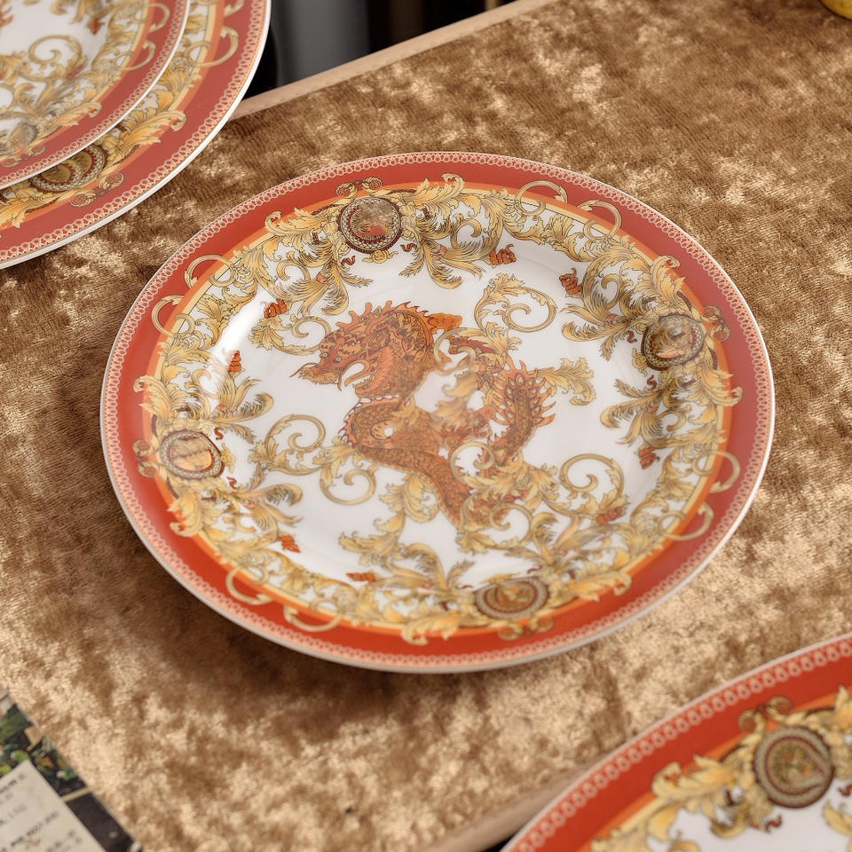 ชุดจานรองถ้วยลายมังกร32ชิ้นสไตล์ยุโรปหรูหราสไตล์ยุโรป