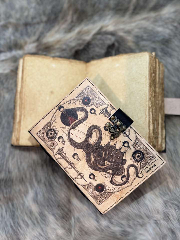 วารสารหนังพิมพ์ลายมังกรนูนพร้อมตัวล็อคทองเหลืองและกระดาษขอบหยักผ้าฝ้ายทำด้วยมือ