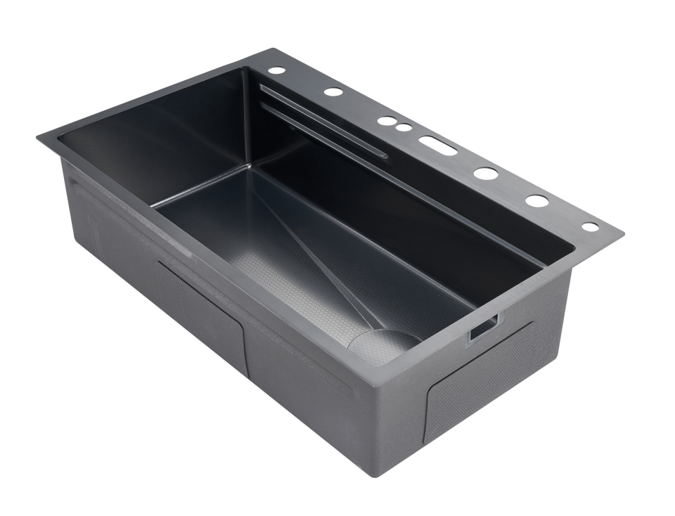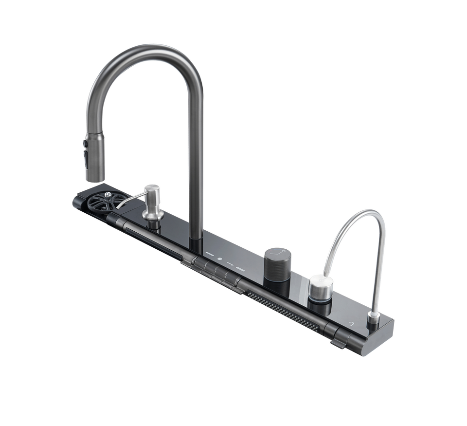 อ่างล้างจานครัวสีดำนาโนรุ่น Dragon Rain Waterfall พร้อมจอ LED แสดงผลแบบคีย์เปียโน และก๊อกน้ำแบบดึงออกได้พร้อมระบบกรองน้ำสะอาด