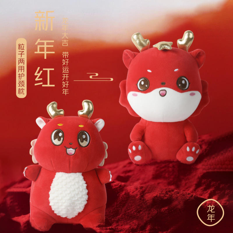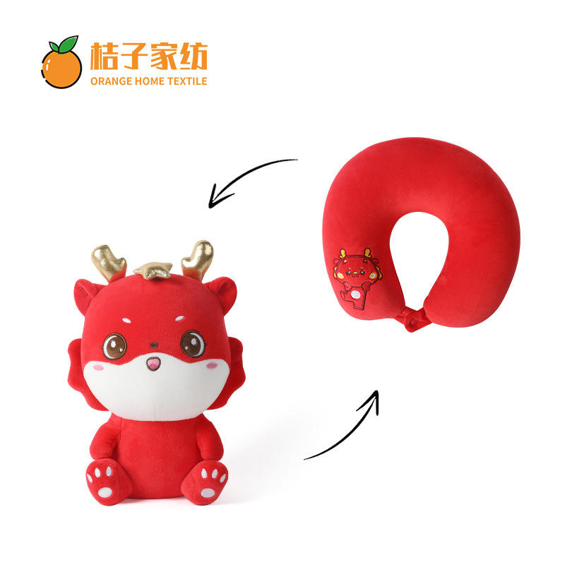 หมอนรองคอรูปตัว U ลายมังกร 28x26x14 ซม. หมอนรองคอการ์ตูนสีแดงแบบพับได้สำหรับผู้ใหญ่ของขวัญ