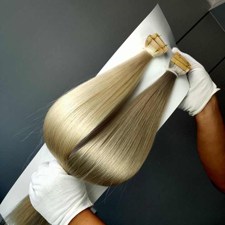 โรงงานดราก้อนบิวตี้ ผมแท้ 100% เรมี่ ขนาด 10-30 นิ้ว คุณภาพสูง ต่อผมแบบเทปจากรัสเซีย สีธรรมชาติแบบออมเบร บาลายาจ