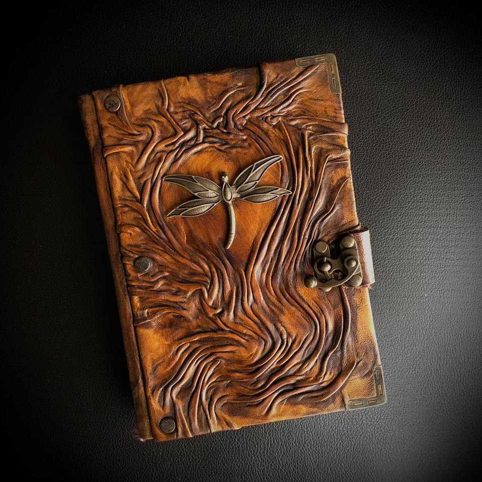 สมุดบันทึกหนังลายนูนรูปแมลงปอ – สมุดบันทึกการทำสมาธิทางจิตวิญญาณ สมุดโน้ตวินเทจทำมือ