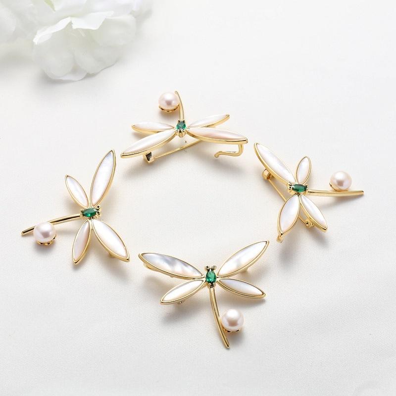 เข็มกลัดมุกน้ำจืดสไตล์เกาหลีรูปแมลงปอ สำหรับตกแต่งเสื้อสูทผู้หญิง