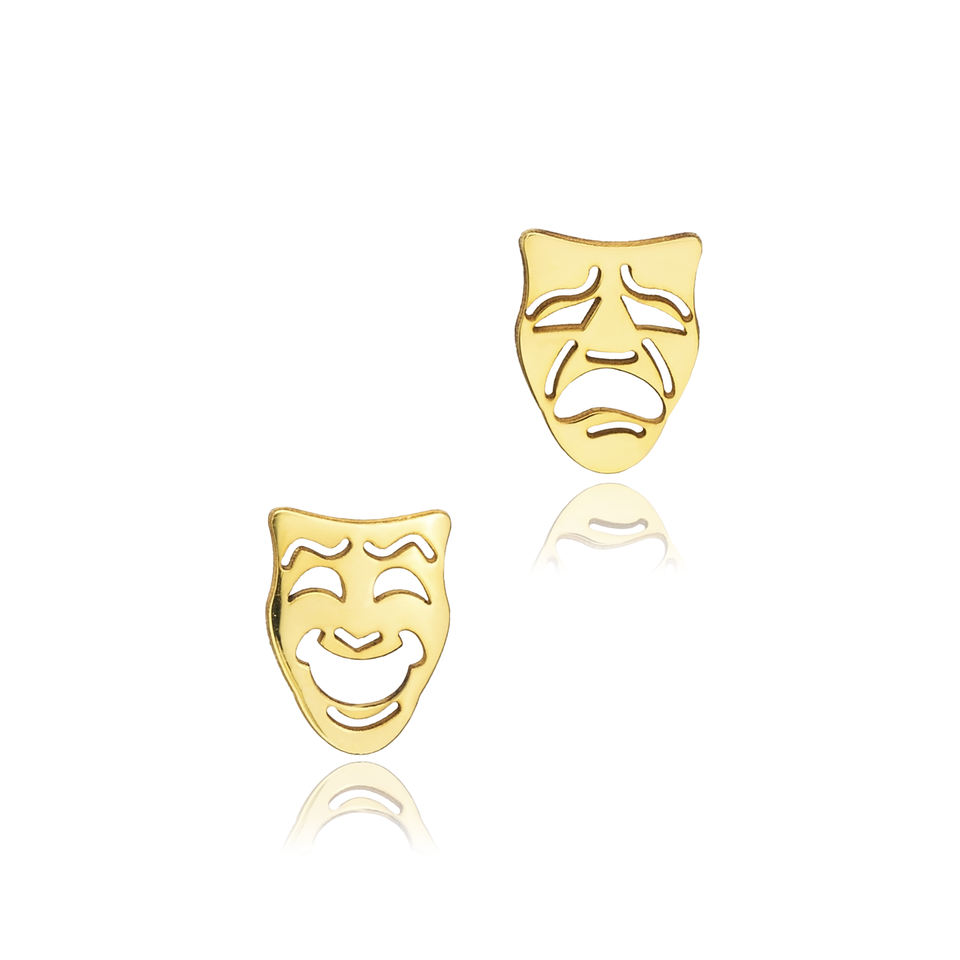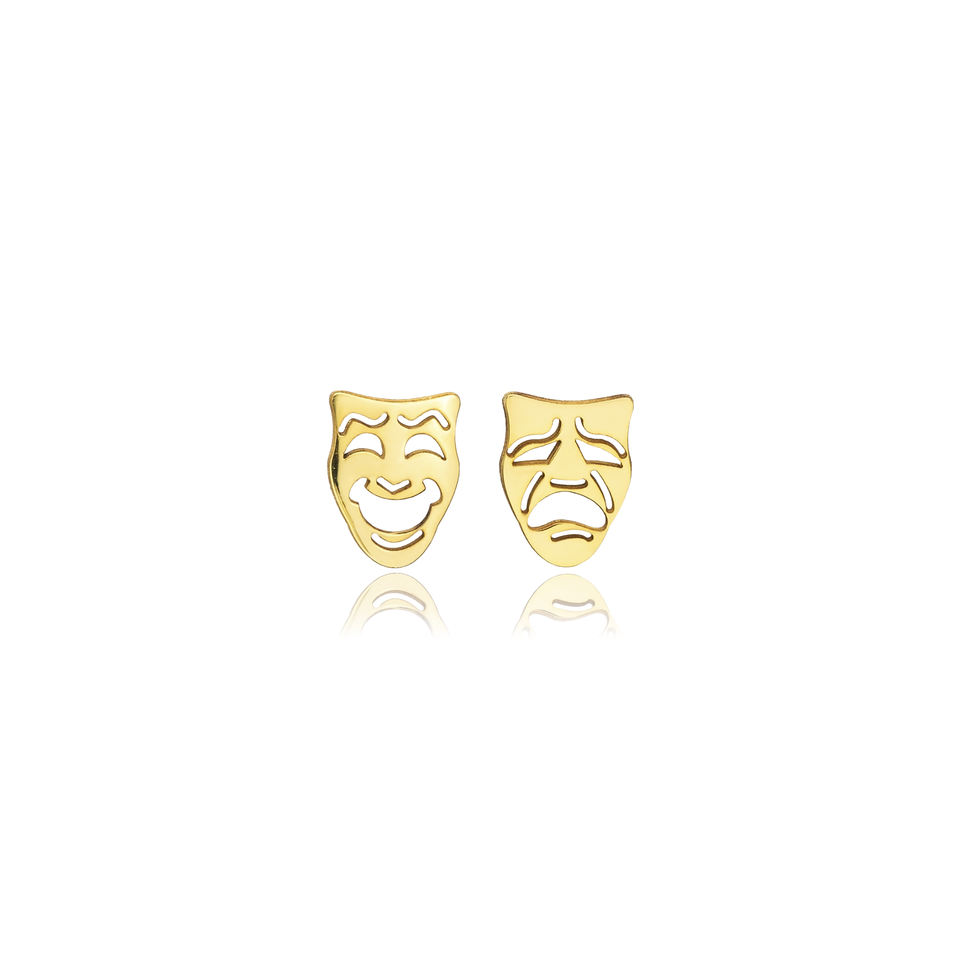 หน้ากากละครละครตลกและโศกนาฏกรรมต่างหูสตั๊ดเงินธรรมดาตุรกีขายส่งเครื่องประดับเงินแท้ 925
