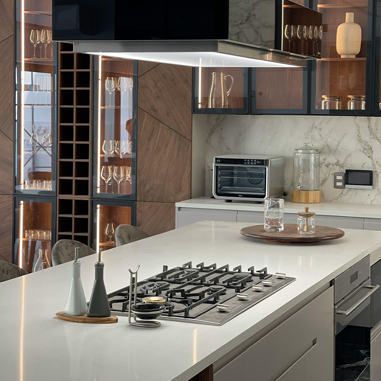 เคาน์เตอร์หินควอทซ์เทียมสีขาวบริสุทธิ์สำหรับงานวิศวกรรมที่อยู่อาศัยวิลล่าบ้านบาร์บ้าน