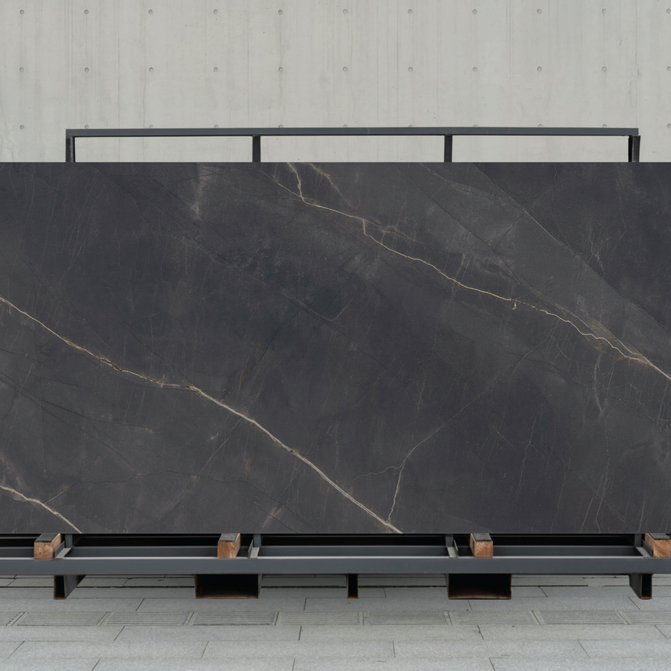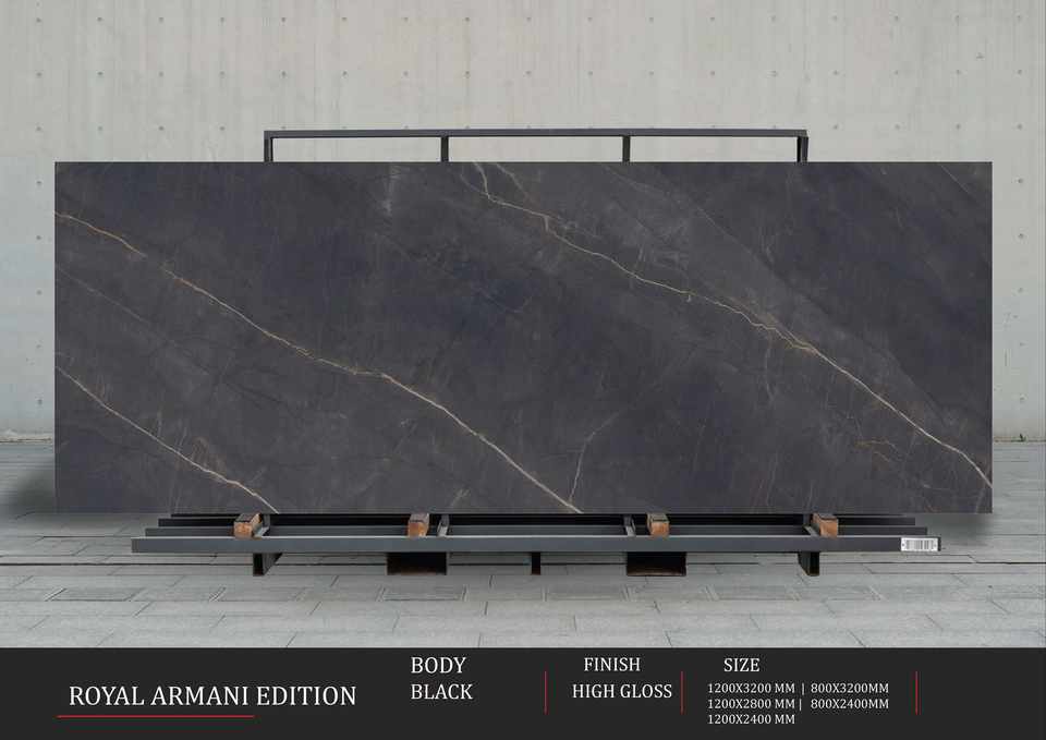 การตกแต่งภายในที่โดดเด่น สร้างสรรค์ด้วยแผ่นกระเบื้องพอร์ซเลนสีดำเงาสูง ขนาด 800x2400 มม.