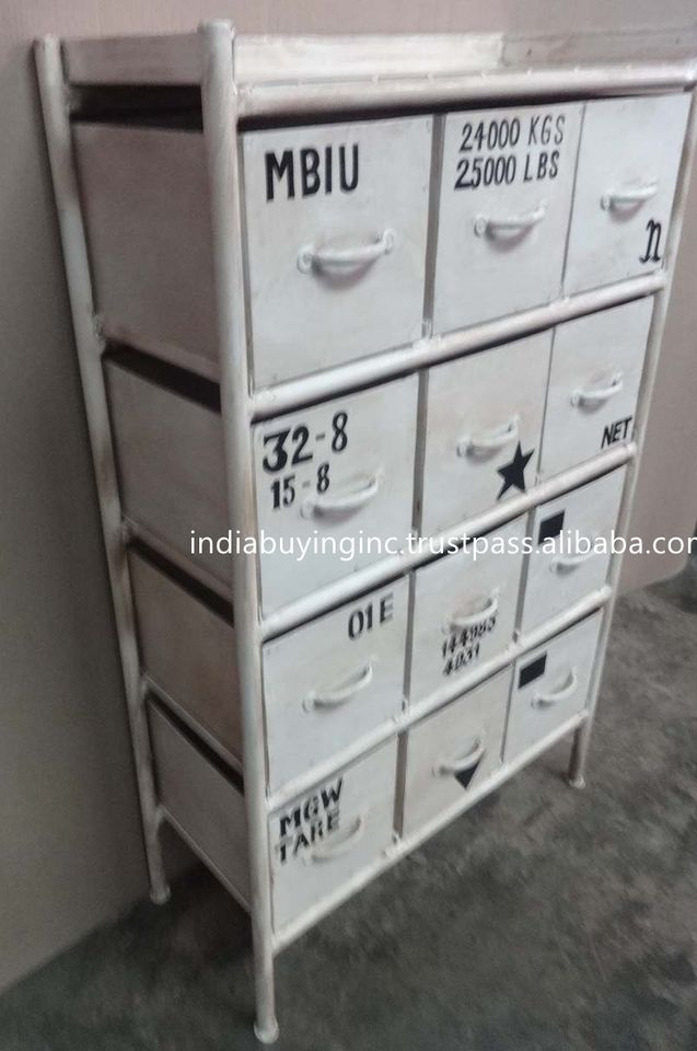 ตู้ลิ้นชักเก็บของ Kabinet,ตู้เก็บของแนวตั้งประเภทตู้เหล็กโลหะเหล็กโบราณอุตสาหกรรมสีขาวหยาบ