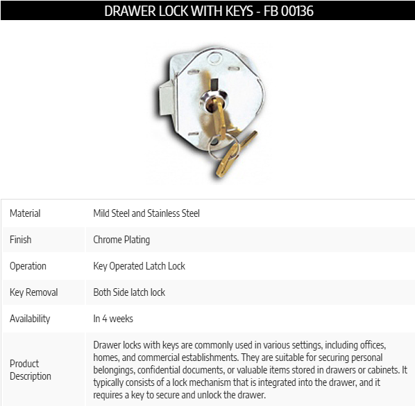 ล็อคลิ้นชักพร้อมกุญแจที่ออกแบบมาเพื่อความปลอดภัยและความสะดวกในการล็อคตู้เก็บของลิ้นชักสำนักงานเฟอร์นิเจอร์ไม้