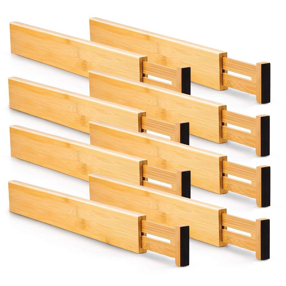 ถาดจัดระเบียบลิ้นชัก ตัวแบ่งช่องเก็บของในครัว สำหรับเก็บช้อนส้อม เครื่องเขียน เครื่องสำอาง อุปกรณ์ต่างๆ ที่จัดระเบียบไม้ 6 ช่อง