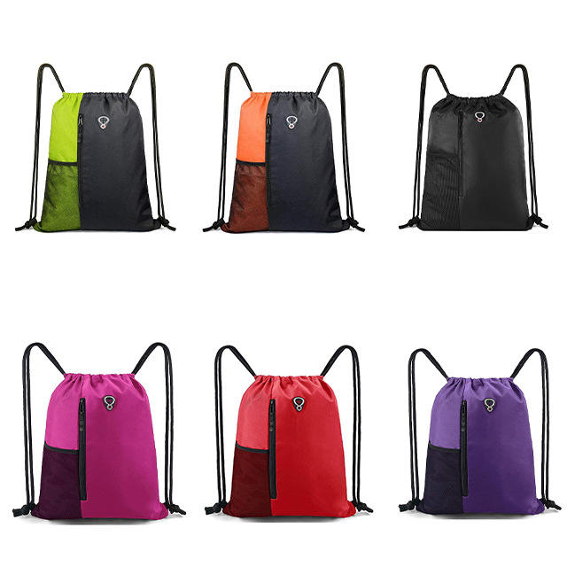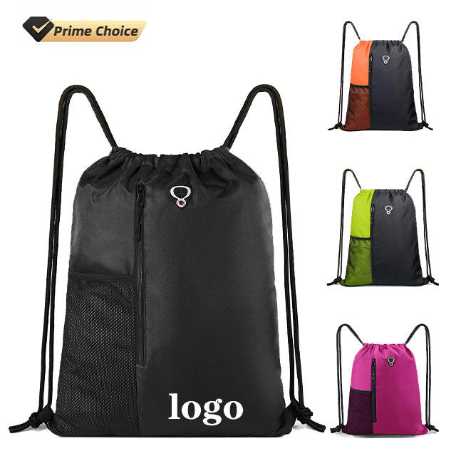 กระเป๋าเป้สะพายหลังเชือกรูดกระเป๋ายิมสำหรับผู้หญิงผู้ชายขนาดใหญ่มีกระเป๋าซิปสองช่องและกระเป๋าตาข่ายใส่ขวดน้ำ