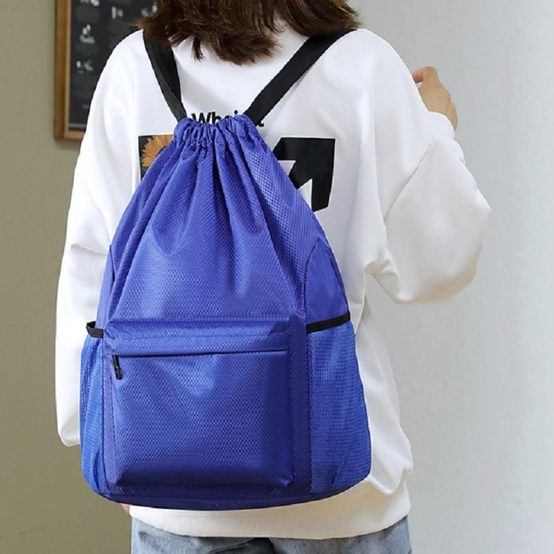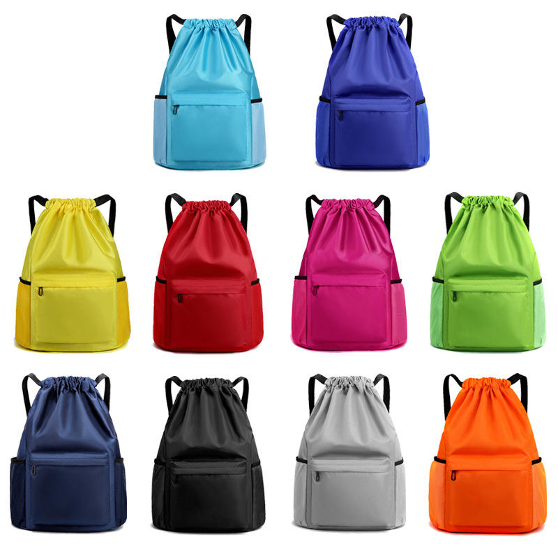 กระเป๋าเป้สะพายหลังแบบมีเชือกผูก กันน้ำ คุณภาพสูง กระเป๋าเชือกแฟชั่นสำหรับเล่นกีฬาและออกกำลังกาย มีช่องด้านข้าง สำหรับผู้ชายและผู้หญิง รับสกรีนโลโก้