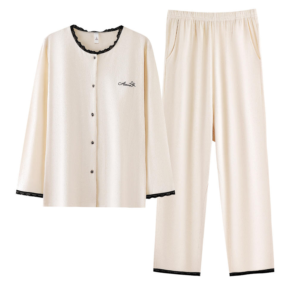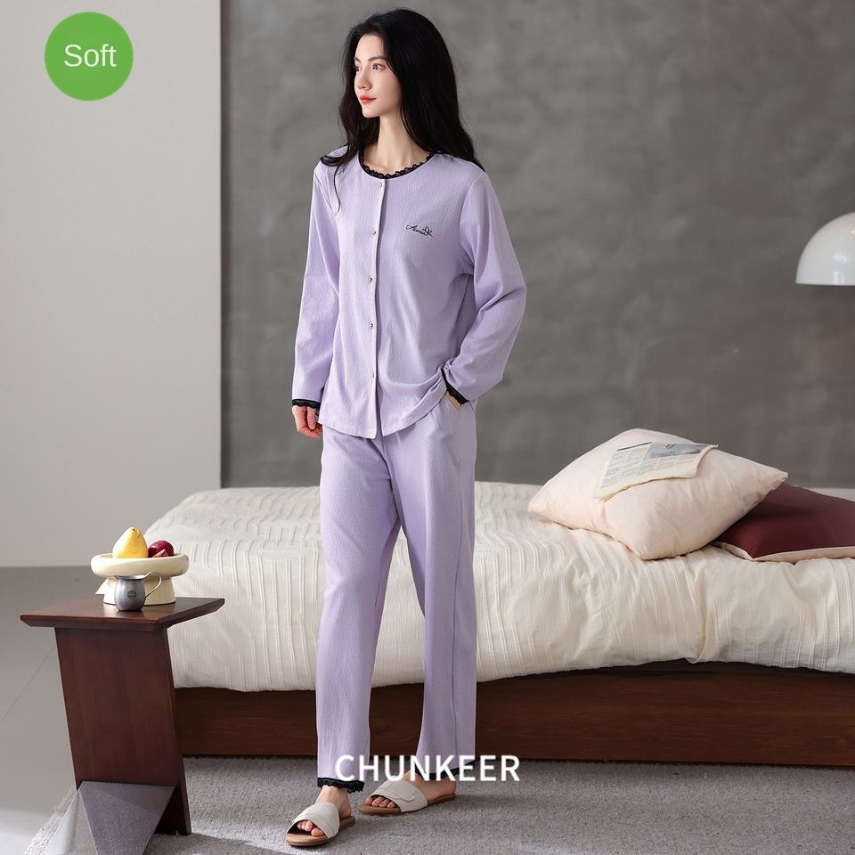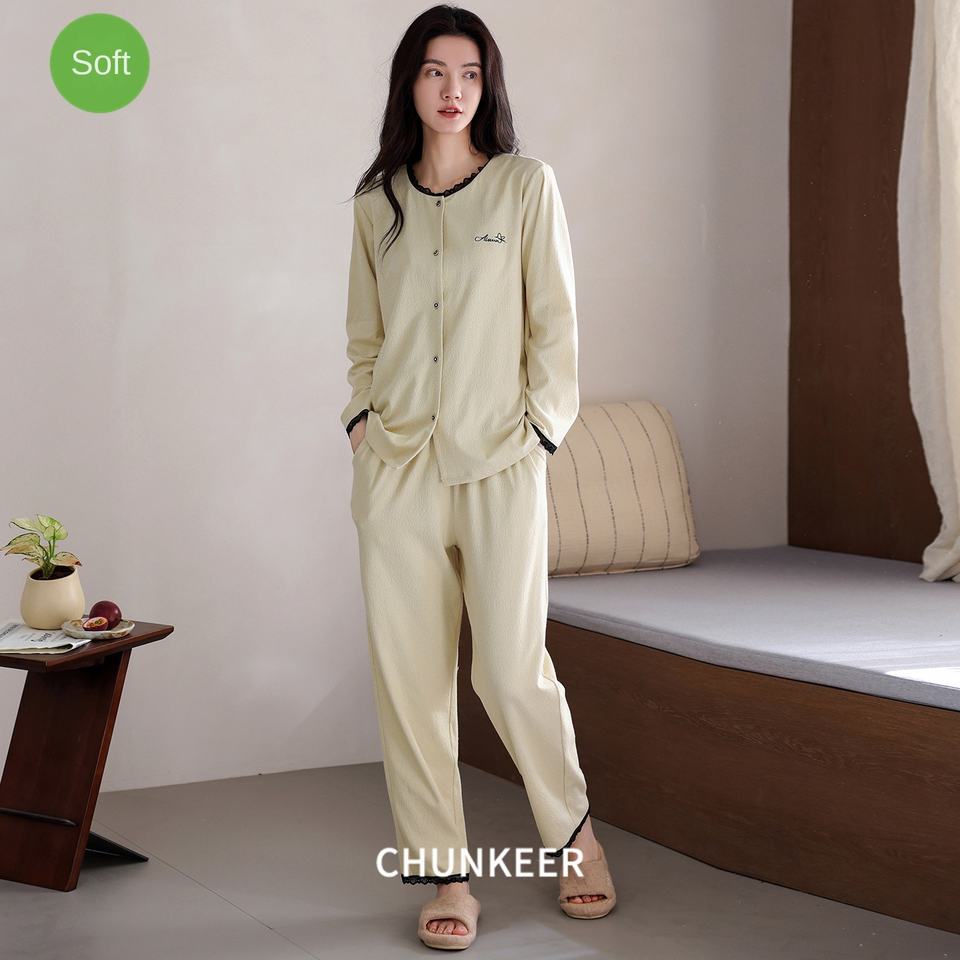ชุดนอนผ้าฝ้ายมีเชือกผูกสำหรับผู้หญิง, เสื้อเปิดเชิ๊ตลูกไม้ทรงหลวมลำลองสวมใส่กลางแจ้งไซส์ใหญ่สำหรับฤดูใบไม้ร่วง