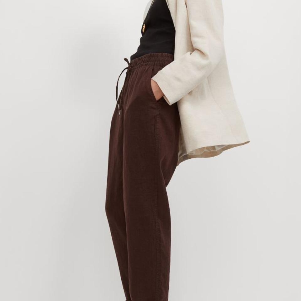 Drawstring กางเกงขากว้างลําลองหลวมสําหรับกางเกงผู้หญิงออกกําลังกาย Joggers ผ้าฝ้ายและผ้าลินินข้อเท้ายาวกางเกง