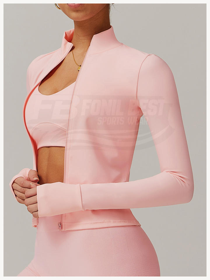 เสื้อวิ่งรัดรูปแบบมีเชือกผูก ระบายอากาศได้ดี สีนู้ดเนื้อผ้าเรียบเนียน ชุดออกกำลังกาย แห้งเร็ว แขนยาว ชุดโยคะ ชุดกีฬา ชุดออกกำลังกายในยิม