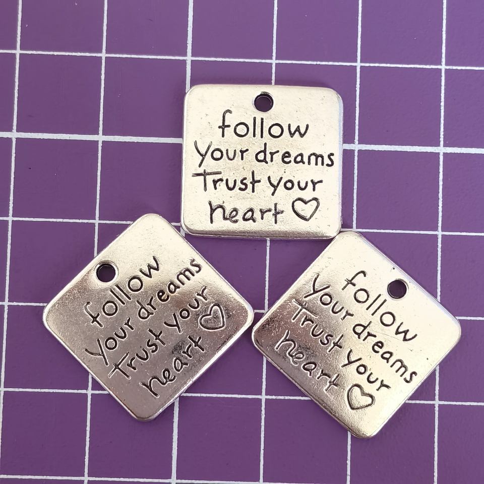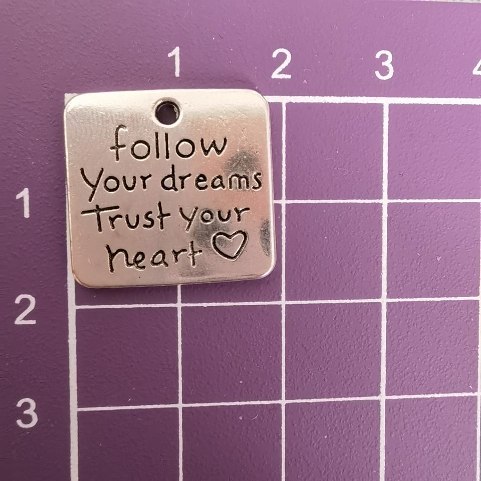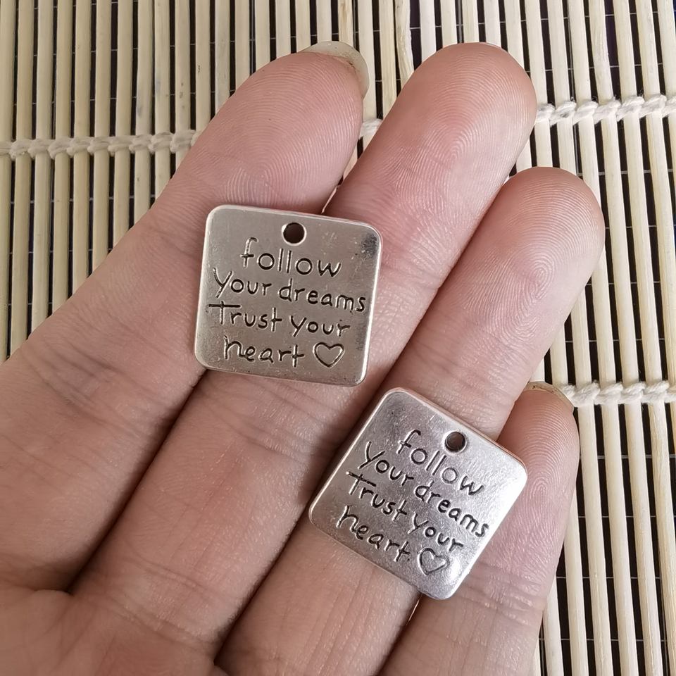 จี้โลหะผสมในฝันพร้อม "ตามความฝันของคุณวางใจในหัวใจ" เสน่ห์สำหรับห่วงโซ่โทรศัพท์มือถือส่วนบุคคลจี้กระเป๋าเป้สะพายหลังรถยนต์
