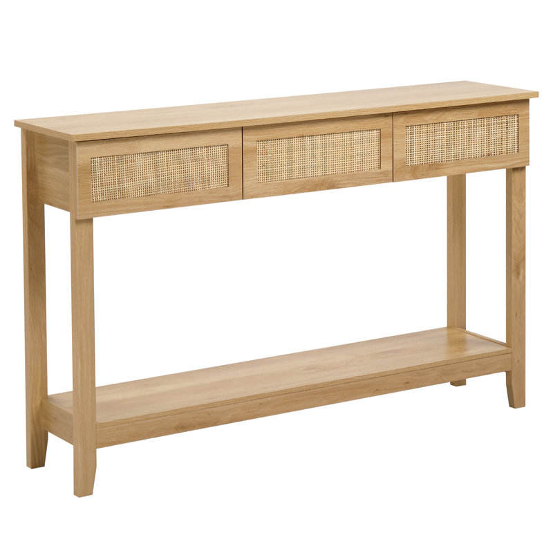 โต๊ะคอนโซลไม้ MDF 2 ชั้น 3 ลิ้นชัก รุ่น DreamCraft พร้อมพื้นผิวหวาย ขนาด 130*30*81 ซม. โต๊ะวางของหน้าประตู ผลิตในเวียดนาม