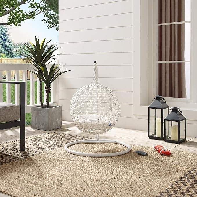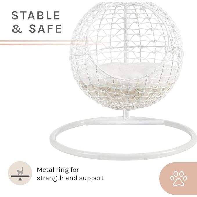 Dreamcraft คอนโดแมวไข่แขวนใน23.5in พร้อมเบาะรองนั่งหวายแสนสบาย2ชิ้นเต็นท์สัตว์เลี้ยงแบบถอดออกได้สีขาว