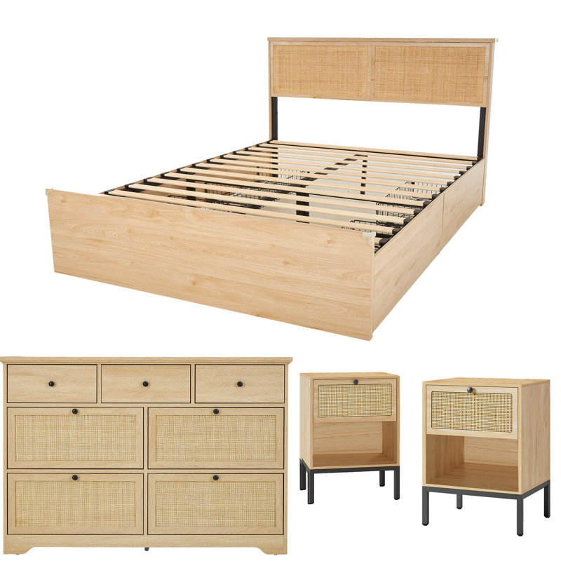 Dreamcraft Boho ชุดห้องนอนหวายธรรมชาติ4ชิ้น, ชุดเฟอร์นิเจอร์ที่เป็นมิตรกับสิ่งแวดล้อมและมีสไตล์จากเวียดนาม