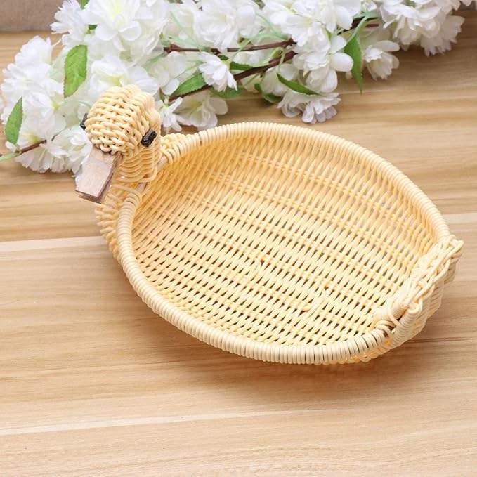 Dreamcraft ตะกร้าขนมปังหวายทรงเป็ดสำหรับตกแต่งห้องครัวในชนบทถาดห่านทรงไข่สำหรับวางผักผลไม้ขนมขบเคี้ยว