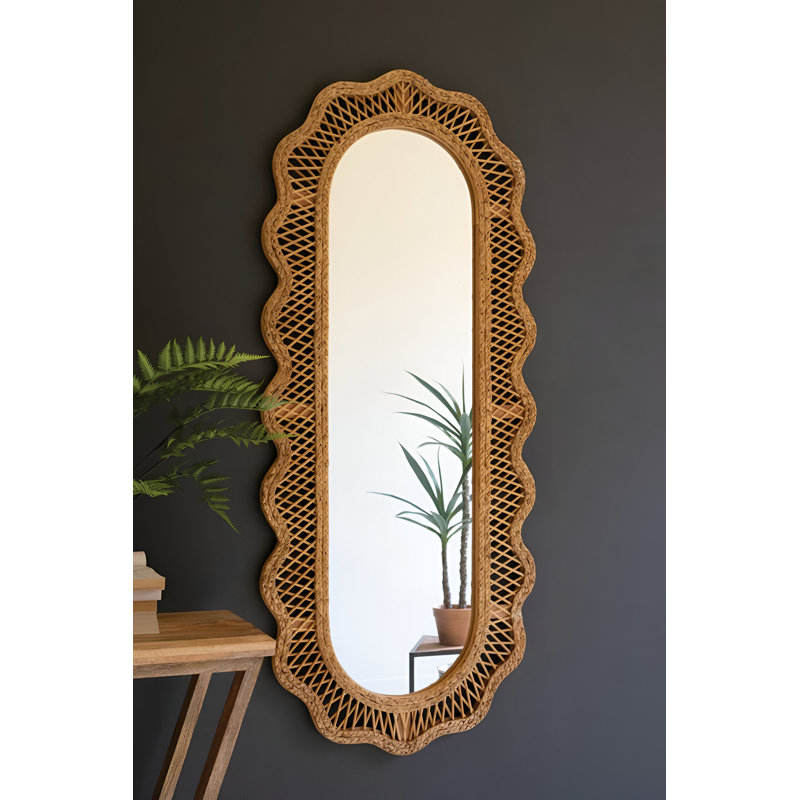 กระจกติดผนังทรงรีสไตล์โบฮีเมียนทำมือจากหวาย DreamCraft พร้อมกรอบหวาย ของตกแต่งบ้านสไตล์เวียดนาม