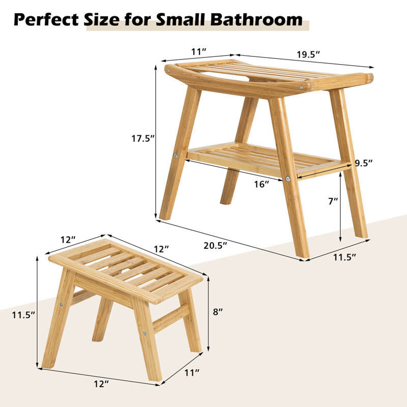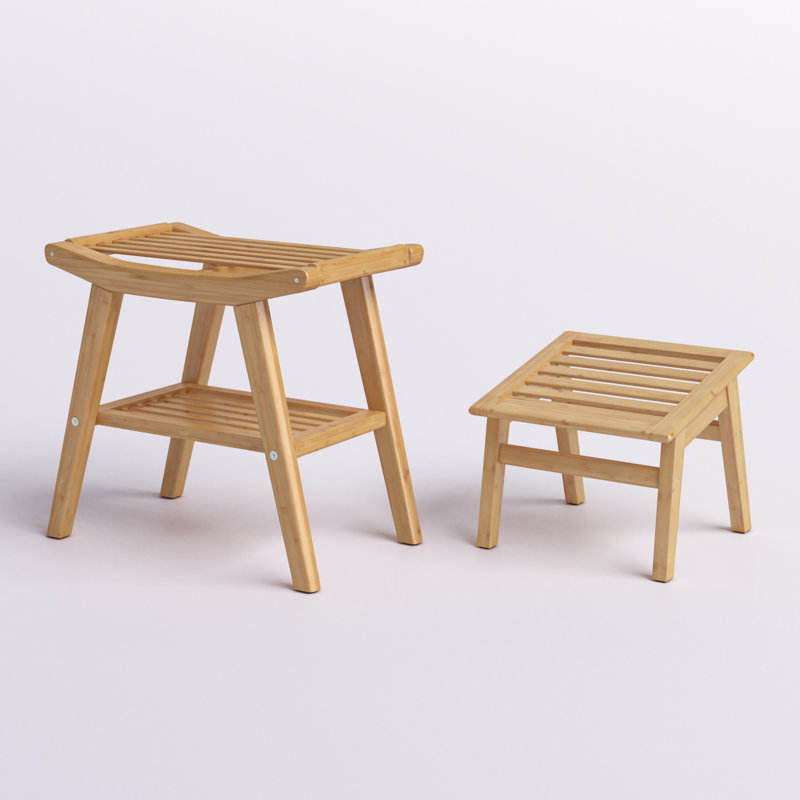 Dreamcraft ochoa 19.5 ''ม้านั่งอาบน้ำไม้ไผ่สมัยใหม่ดีไซน์ร่วมสมัยสำหรับห้องน้ำห้องนอนโรงแรมใช้ในสไตล์ญี่ปุ่น