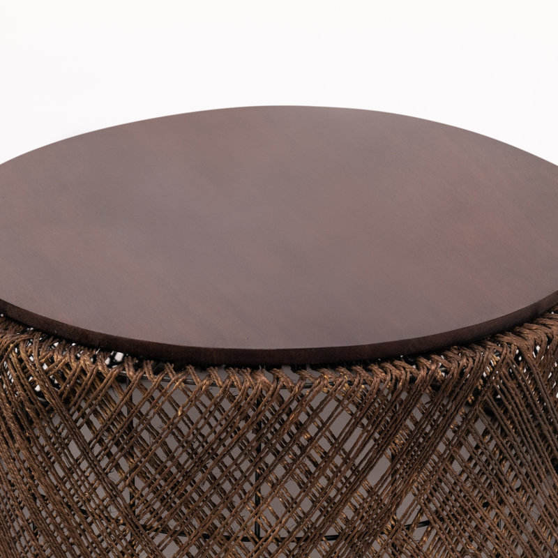 Dreamcraft ชุดโต๊ะกาแฟทรงกลมโต๊ะข้างหญ้าทะเลและไม้เนื้อแข็งตกแต่งด้วยเฟอร์นิเจอร์ห้องนั่งเล่นจากเวียดนาม
