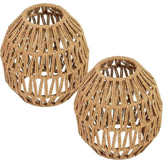 Dreamcraft ชุดโคมไฟหวายรูปไข่สไตล์โบโฮ2ชิ้นสำหรับแขวนผนังหรือจี้เวียดนาม