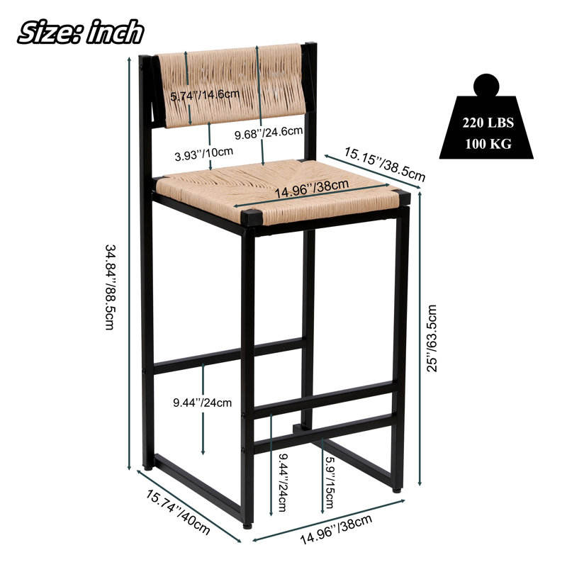 Dreamcraft ชุดเก้าอี้รับประทานอาหารสานเชือกกระดาษ2ตัวพร้อมเก้าอี้บาร์ด้านหลังจากเวียดนาม