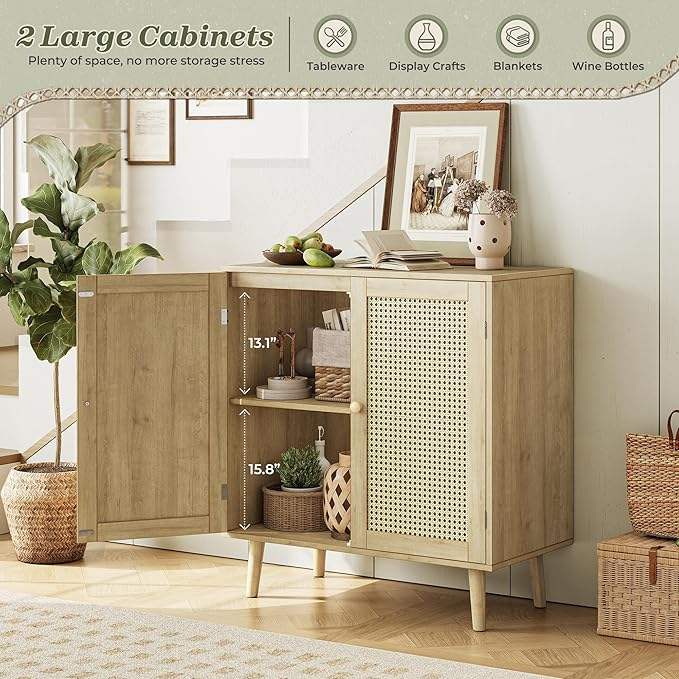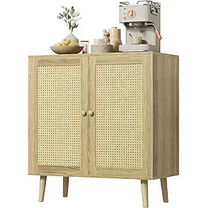 ตู้ข้างโซฟาไม้เนื้อแข็งดีไซน์สวยงาม พร้อมตกแต่งด้วยหวาย ตู้เก็บของอเนกประสงค์สำหรับห้องครัว ผลิตในเวียดนาม