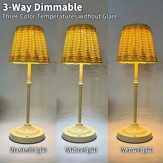 Dreamcraft โคมไฟหวายแบบสัมผัสหรี่แสงได้3ทางแบบชาร์จไฟได้, โคมไฟตั้งโต๊ะหวายสานมือสำหรับตกแต่งบ้านทั้งในร่มและกลางแจ้ง
