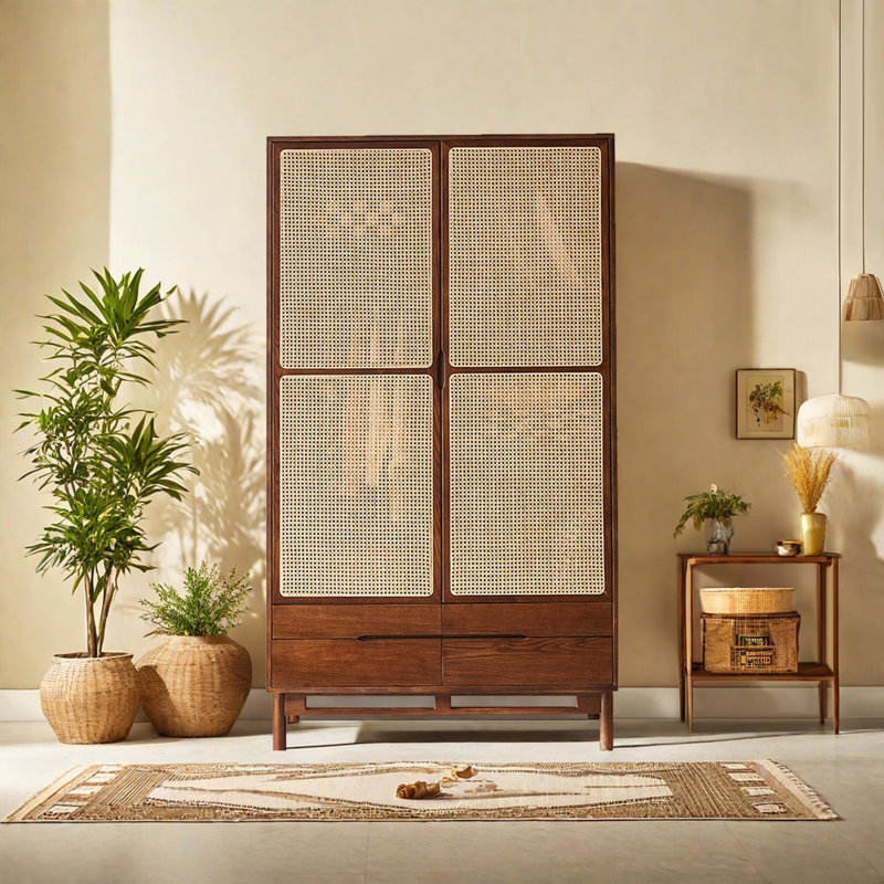 ตู้เสื้อผ้าแบบพับได้สไตล์เรโทรเวียดนามจากดรีมคราฟท์ ทำจากหวายถัก สไตล์มินิมอล เหมาะสำหรับอพาร์ทเมนต์