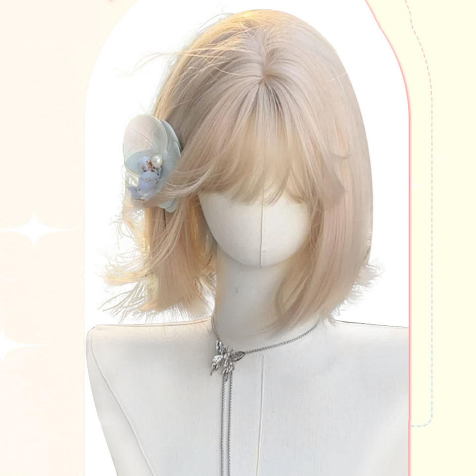 ดรีมวิกวิกผมสั้นตรง 33 ซม. สีเบจโกลด์ คลุมทั้งศีรษะ เส้นผมธรรมชาติ เส้นใยคานาคาลอน สวมใส่ได้ทุกวัน