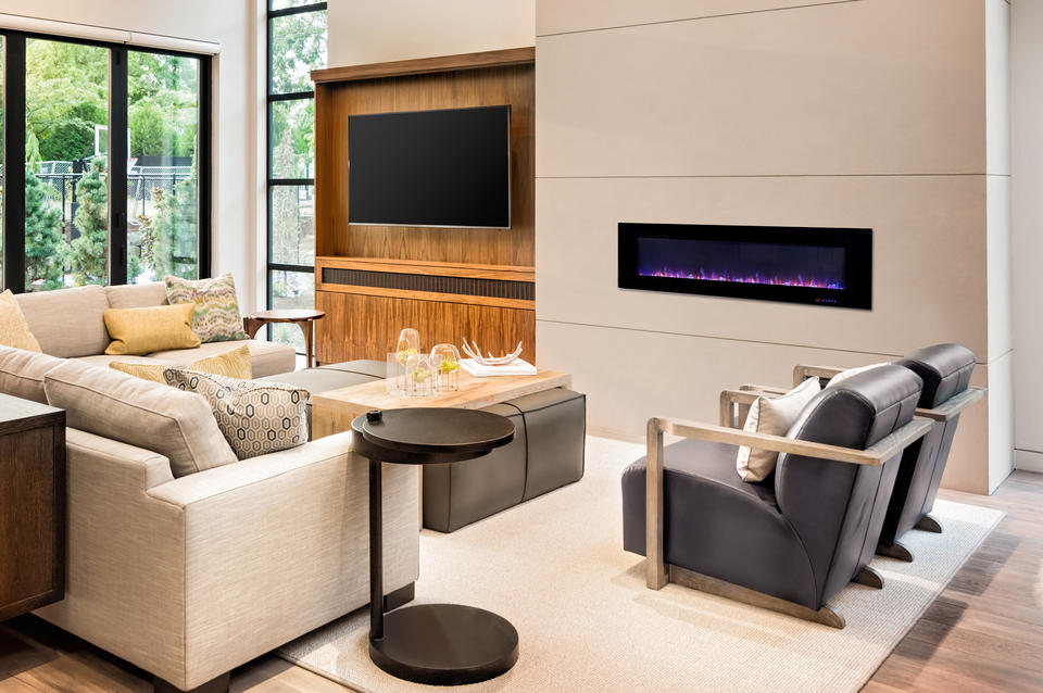 Dreamflame เครื่องทำเตาผิงไฟฟ้าในร่มขนาด72นิ้ว, เครื่องทำความร้อนติดผนังควบคุมระยะไกลไฟ LED เปลวไฟจริงไม่เหมาะสำหรับปิดภาคเรียนใช้ในบ้าน