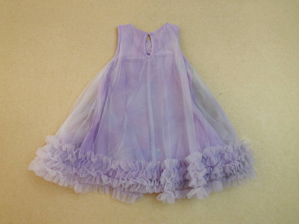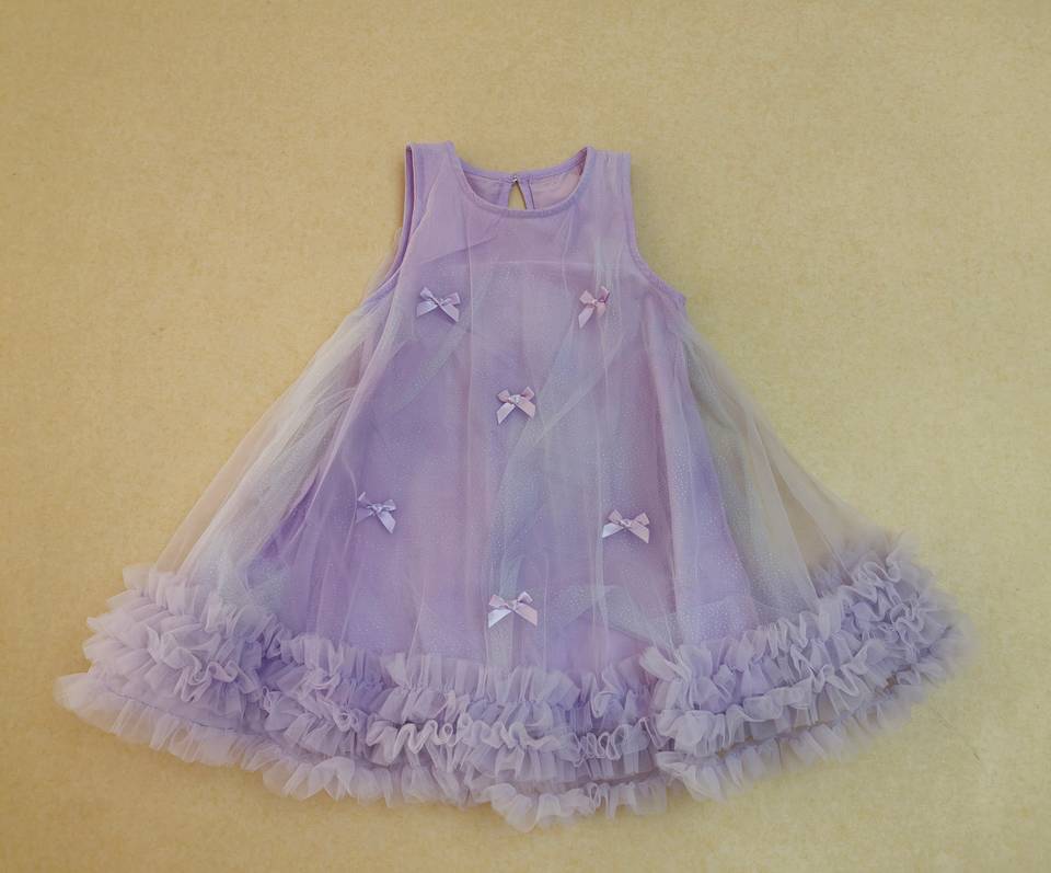 กระโปรงแต่งจีบลายดอกลาเวนเดอร์สไตล์เจ้าหญิงคอกลมลำลองประดับด้วยโบว์เล็กสำหรับเด็กผู้หญิง