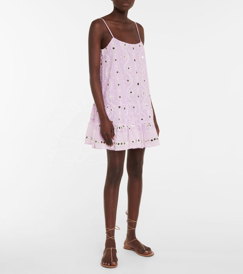 Exclusive Hot Sequined Embroidered Boho Lady Cotton Tunic White Geometric Print Women Sunny Vacation Mini Dress