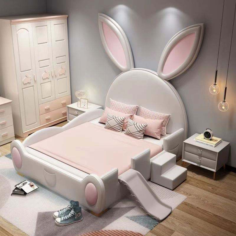 เตียงเด็กสไตล์เจ้าหญิงลายการ์ตูนน่ารัก รุ่นดรีมมี่แรบบิท พร้อมลิ้นชักเก็บของสำหรับห้องนอนเด็กผู้หญิง